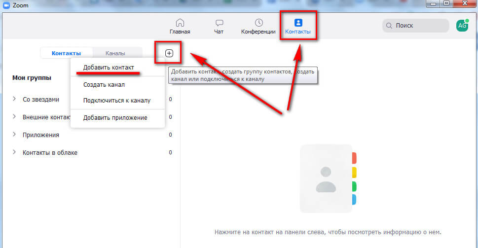 Прописываем почтовый адрес человека. Ему на почту приходит предложение зарегистрироваться в Zoom или скачать приложение. Нажимаем «Добавить контакт». Он сохраняется в адресной книге.