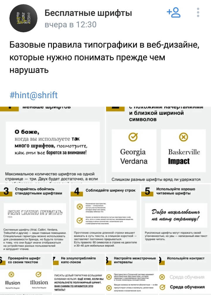 Пример интересной подборки, которую хочется сохранить — Базовые правила типографики в веб-дизайне.