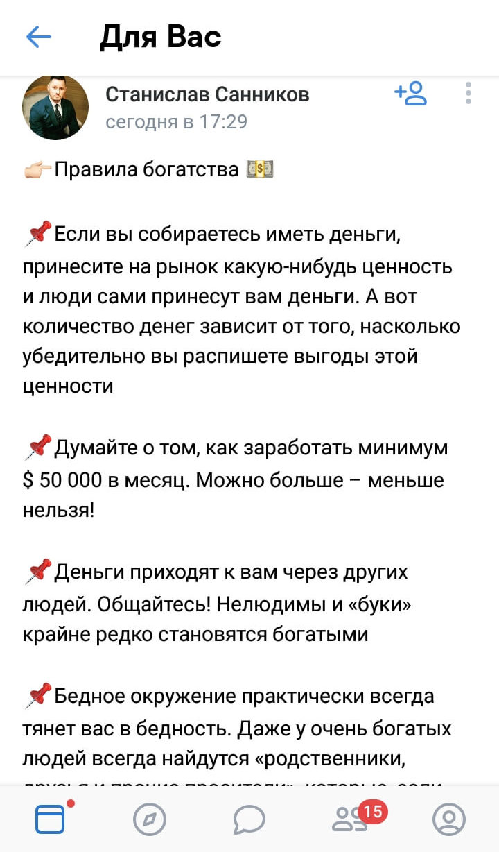 В рекомендации часто попадают авторские заметки — о бизнесе, о жизни, на тему психологии, философские размышления.