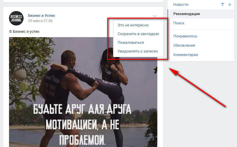 - это не интересно — пост больше не будут показывать в ваших рекомендациях;