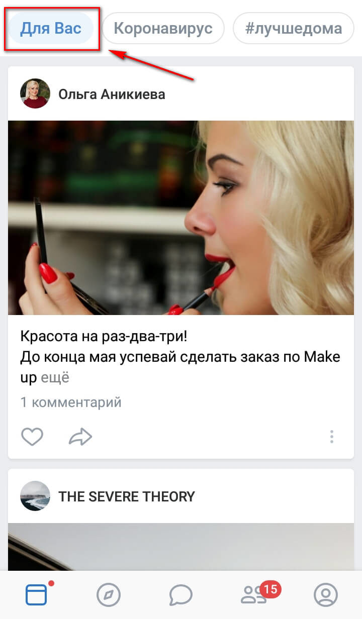 А затем кнопку «Для вас». Здесь отображаются интересные посты.