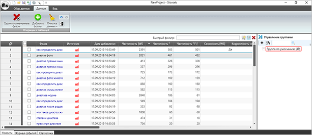 Умный подбор запросов сам отсеет нерелевантные и ненужные слова, кластеризует запросы по вашим параметрам, покажет реальную частотность.