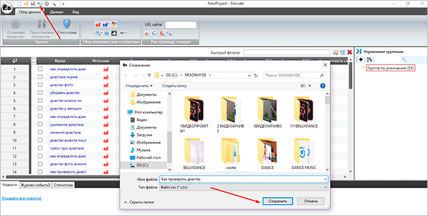Шаг 7. Экспортируем файл в таблицу Excel. Кликаем на значок программы вверху. Выбираем папку и нажимаем “Сохранить”.