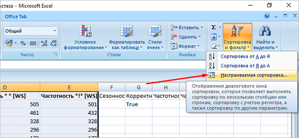 Выбираем “Настраиваемая сортировка”.