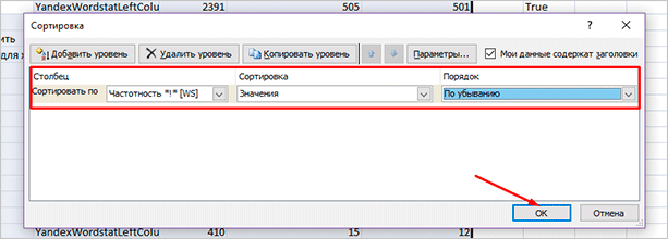 Сортируем по частотности *!*, значениям. В порядке возрастания, когда первым делом нужны НЧ запросы. По убыванию, если основа стратегии продвижения – ВЧ ключи.