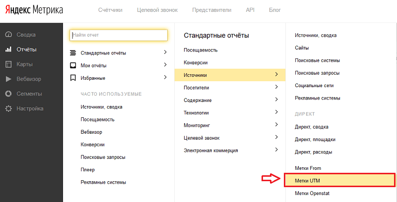 В Метрике от Яндекса данный отчет называется «Метки UTM» и находится в разделе «Источники». В аналитике Google это отчет «Все кампании» в подразделе «Кампании» раздела «Источники трафика».