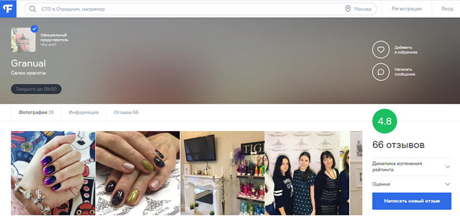 Это привлечет клиентов, которые находятся рядом или ищут салоны в пределах конкретного адреса. А еще в карточке салона можно отвечать на отзывы и вопросы пользователей, тем самым привлекая новых гостей в свой салон.