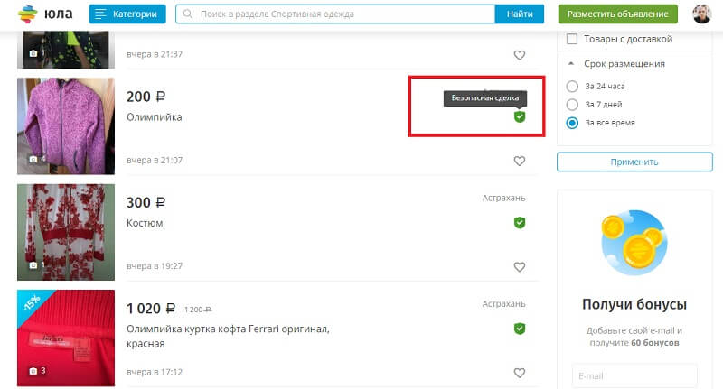 «Юла» — это бесплатный сервис объявлений. В сервисе есть внутренняя валюта — бонусы. Их начисляют за привязку email, подписку на сообщество в соцсетях, репост записи с информацией о сервисе, привязку карты, а также за продажу товаров со скидкой. Бонусами можно оплачивать дополнительные услуги сервиса, например, поднятие объявлений.