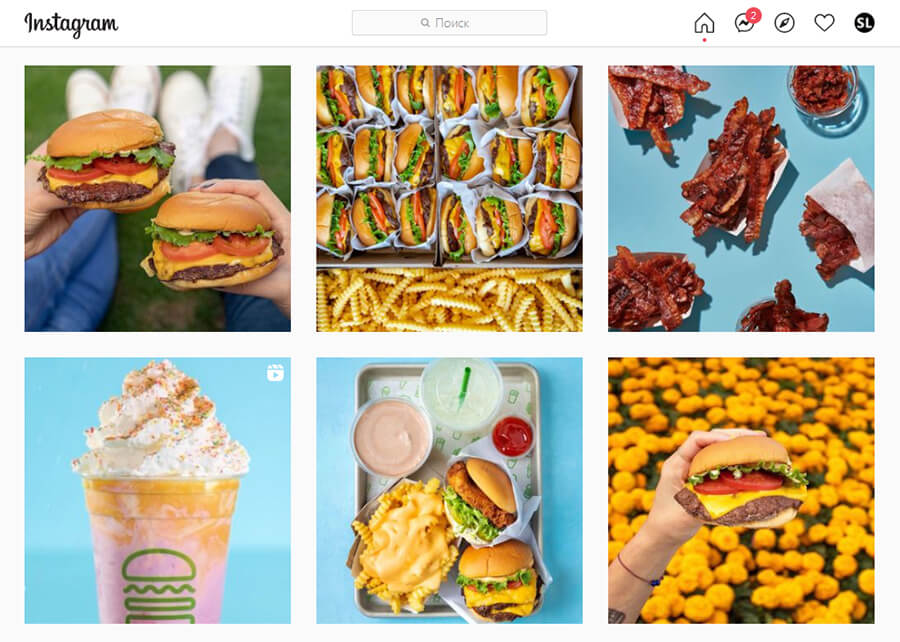 Простой пример — бренд @shakeshack. На первый взгляд, это просто очередная компания, предлагающая фастфуд. Но после того, как вы полистаете их профиль с яркими сочными фото, у вас обязательно возникнет желание попробовать продукт.