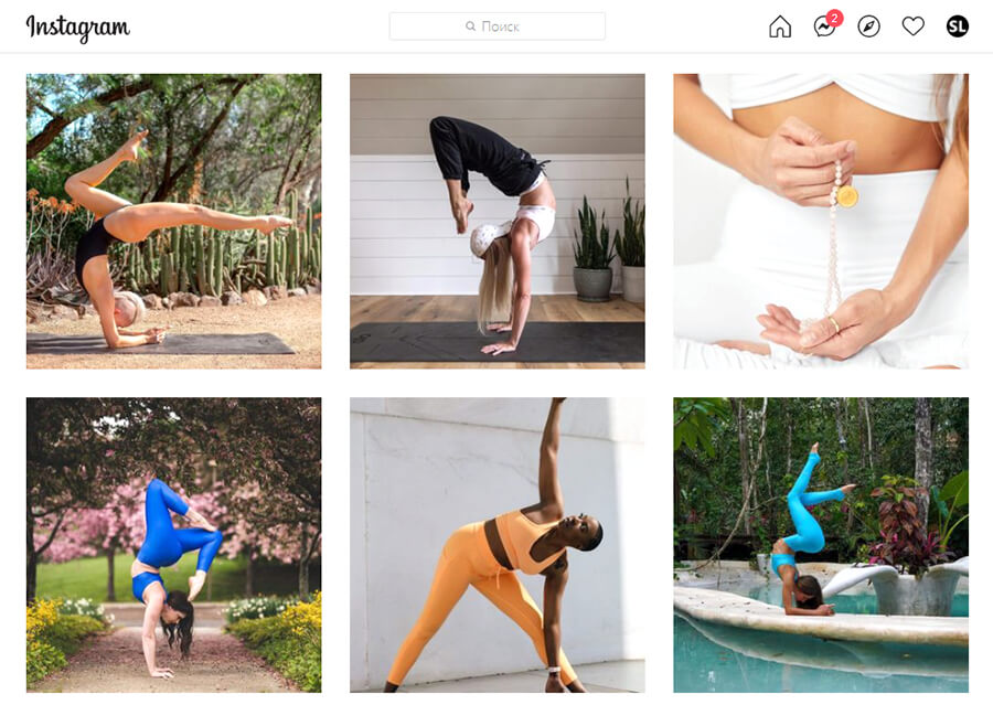 #1. Бренд одежды @aloyoga практически не выкладывает товары. Вместо этого в аккаунт постят потрясающие снимки людей, которые занимаются йогой. Владельцы бренда создали целое движение любителей йоги и вовлекают в него все больше людей. Подписчики становятся активными участниками движения и постоянными клиентами бренда.