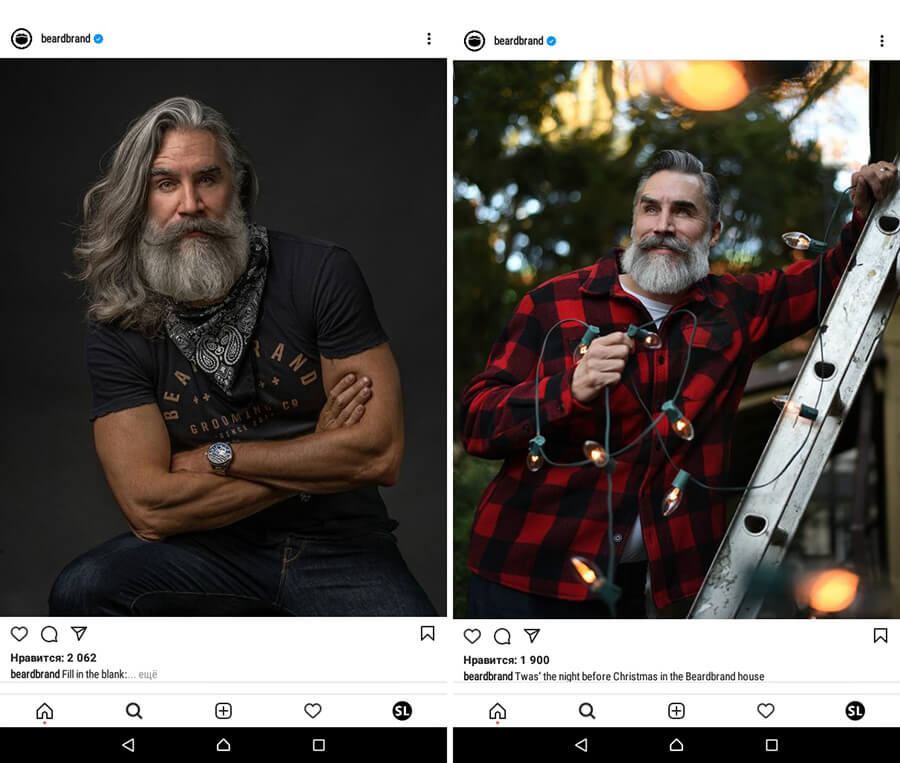 #2. Бренд средств по уходу за бородой и волосами @beardbrand. В контенте часто используют образ брутальных ухоженных мужчин. То есть продают не просто товар — а стиль. Как может выглядеть мужчина с их продукцией.