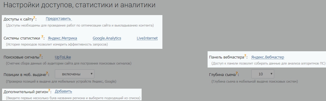 - подключите системы аналитики, так система PromoPult сможет отслеживать статистику переходов на сайт, измерять эффективность запросов и корректировать стратегию продвижения при необходимости);