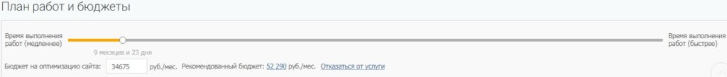 Объем работ, которые нужно выполнить, фиксированный. А корректировка бюджета позволяет гибко установить срок выполнения оптимизации. Если средства позволяют — можете ускорить процесс. Если свободных средств недостаточно для этого — уменьшайте бюджет и продвигайтесь «в рассрочку».