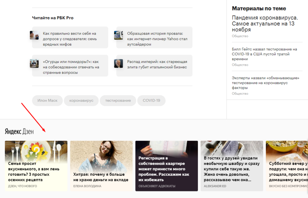 Вот пример перехода с публикации в ленте Дзена на сайт: