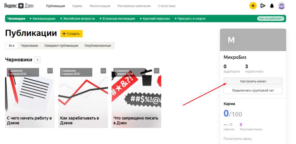 После подготовки канала можно приступать к продвижению. Для повышения популярности канала используйте все возможности Яндекс.Дзена: подключите RSS-ленту, работайте над увеличением Кармы, тестируйте разные форматы публикаций.