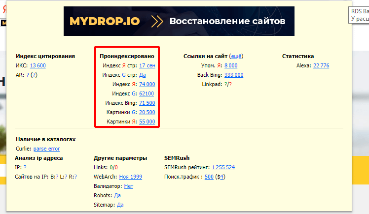 Способ 2: Как узнать сколько страниц проиндексировал Яндекс.