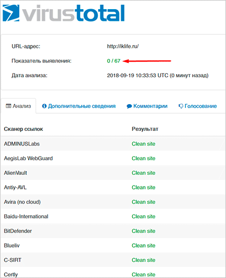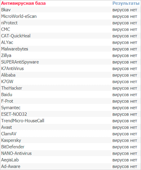 Даже такие гиганты, как Касперский, Авира, Аваст, Доктор Веб, участвуют в проверке файлов и ссылок. Все результаты доступны в виде удобной таблицы, где по каждой программе есть свой вердикт. Если хотя бы одно приложение сигнализирует о наличии вредоноса – стоит задуматься.