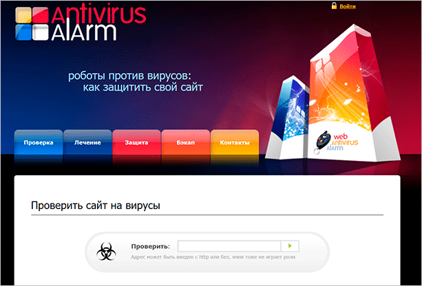 Принцип действия Antivirus Alarm такой же: вводите адрес, получаете результат после нажатия на кнопку “Проверить”. Он представлен вот так.