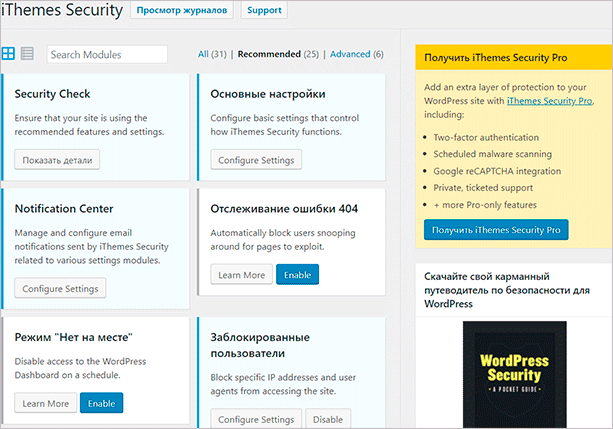 Простой плагин, который ранее имел название Better WP Security. Функционал очень большой, поэтому iThemes Security очень часто рекомендуют установить в самом начале, еще до заражения. Огромное количество опций позволит вам избежать заражения. Это ведь куда лучше, чем потом разбираться с последствиями, правда?