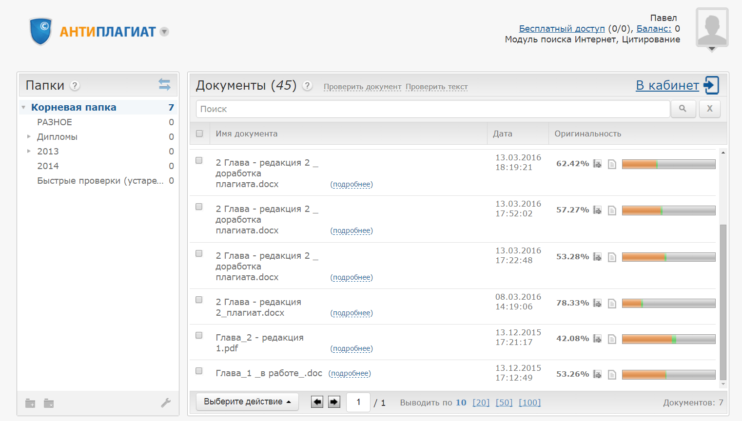 Даром может проверить документ до 15 000 знаков. В остальных случаях нужно выбрать платный вариант, где каждая 1 000 знаков стоит 65 копеек.