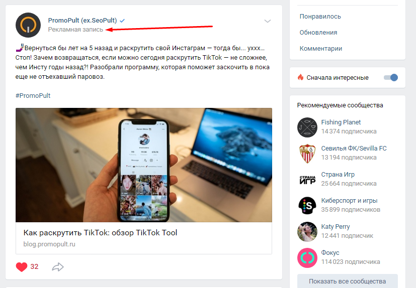 Реклама в ленте — публикации от имени сообщества, в которой может содержаться текст, фото, видео, карусель и другие форматы контента. Отображается в новостной ленте с пометкой «Рекламная запись». Показывается пользователям любых устройств — компьютеров, смартфонов, планшетов.