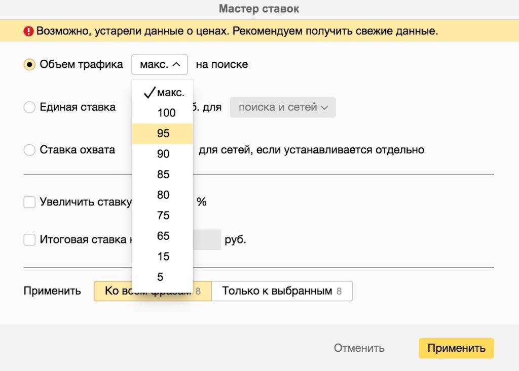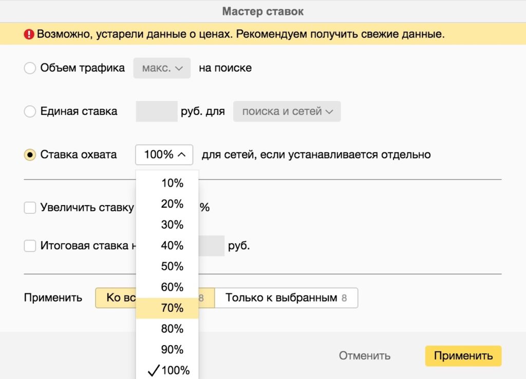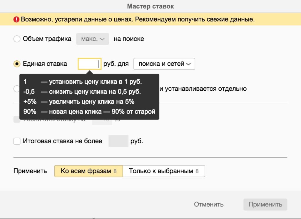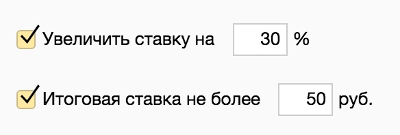 В последнем случае вы можете не только назначить ставку за клик в рублях, но и установить корректировку прошлой ставки.