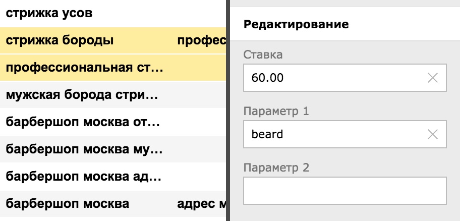 Дополнительные параметры ключевых слов, возможно, не так часто приходится редактировать массово, однако они стоят упоминания хотя бы потому, что такой функции нет в веб-интерфейсе Яндекс.Директа.