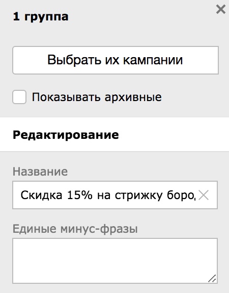 Единые минус-фразы на уровне групп настраиваются аналогично: