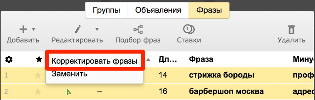 Оба инструмента можно найти в меню «Редактировать – Корректировать фразы» на вкладке ключевых фраз.