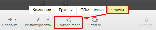 Кликните на вкладку «Фразы». На панели инструментов выберите «Подбор фраз».