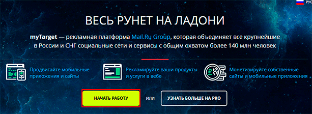 Теперь нажимаем на желтую кнопку “Начать работу”.