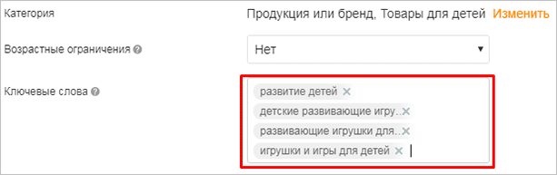 - Возрастные ограничения. Это важно для детских и, наоборот, взрослых товаров.