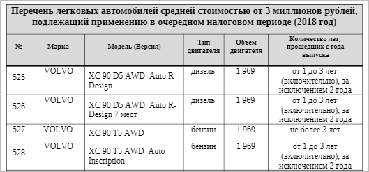 - Повышающие коэффициенты для некоторых дорогих автомобилей стоимостью от 3 млн рублей. Список публикуется на сайте Минпромторга. Это внушительный по объему документ. Фрагмент таблицы выглядит так: