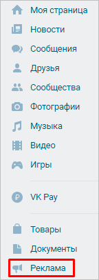 Маркет-платформа и рекламные биржи значительно упрощают запуск рекламной кампании и гарантируют выполнение заявки. Чтобы воспользоваться встроенными возможностями ВКонтакте, зайдите в раздел “Реклама” в левом меню.