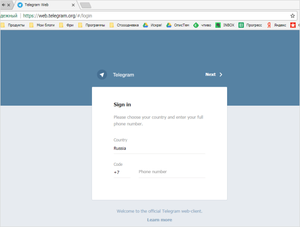 Официальной русской веб-версии нет, только англоязычная – web.telegram.org. Поменять язык в ней нельзя.