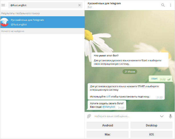 Конечно, неприятно, когда приходится танцевать с бубном, чтобы включить поддержку родного языка в Телеграм, но ничего не поделаешь.