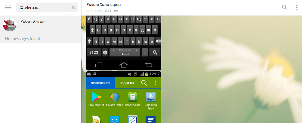 Шаг 1. Принцип тот же. Ищем уже знакомого Антона. Фраза для поиска @telerobot.