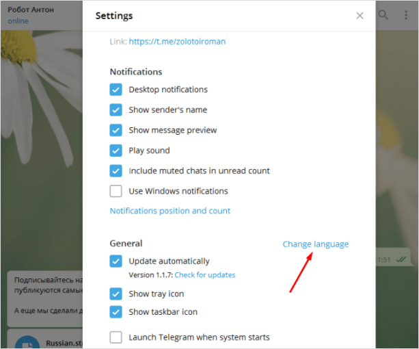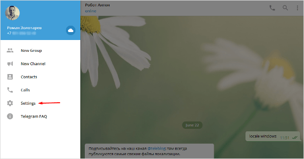 С процессом установки и регистрации Телеграм вы уже знакомы, поэтому приступаем к изменению языка.