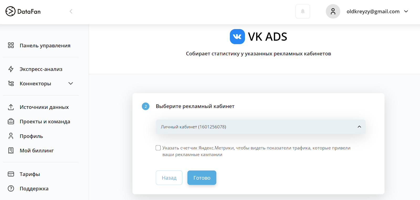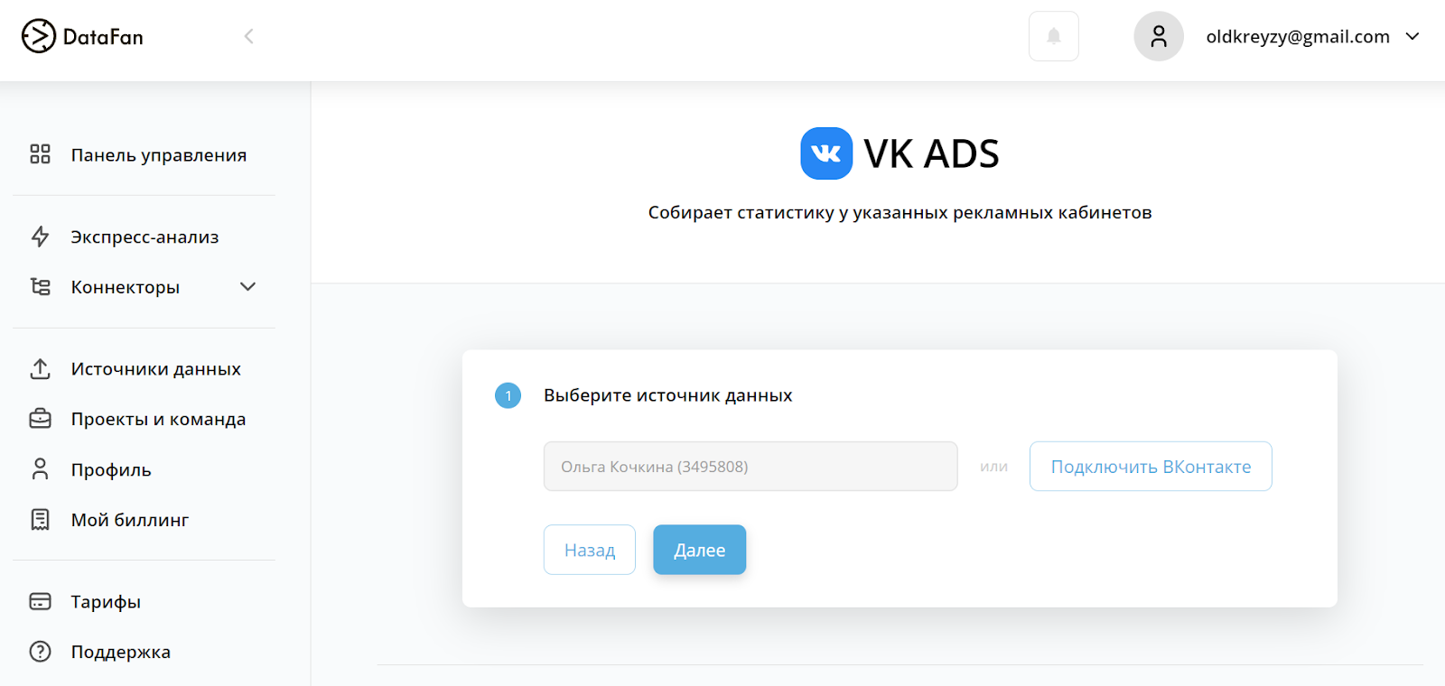 Как воспользоваться. Зайдите в личный кабинет DataFan и подключите РК ВКонтакте — VK Ads. Дашборд сформируется автоматически, данные загрузятся в течение 5–7 минут.