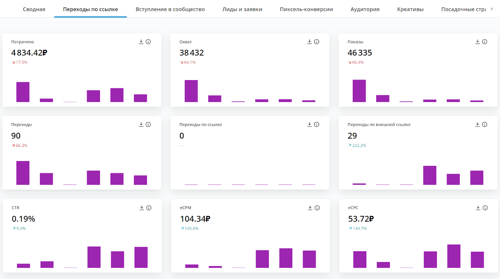 Там может выглядеть фрагмент дашборда по таргетированной рекламе для SMM-щика