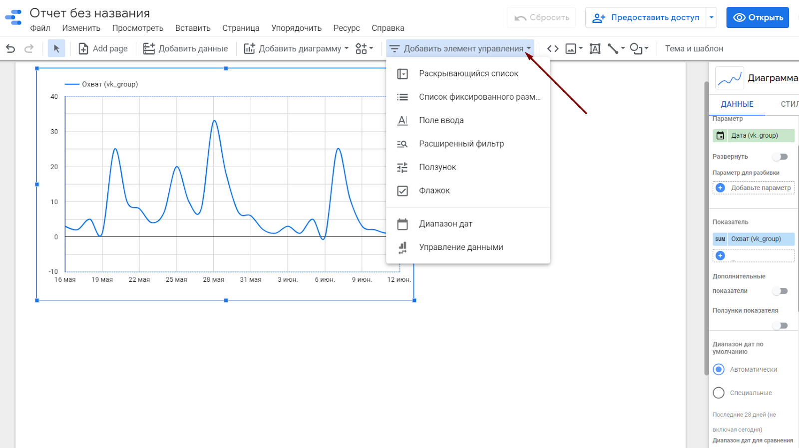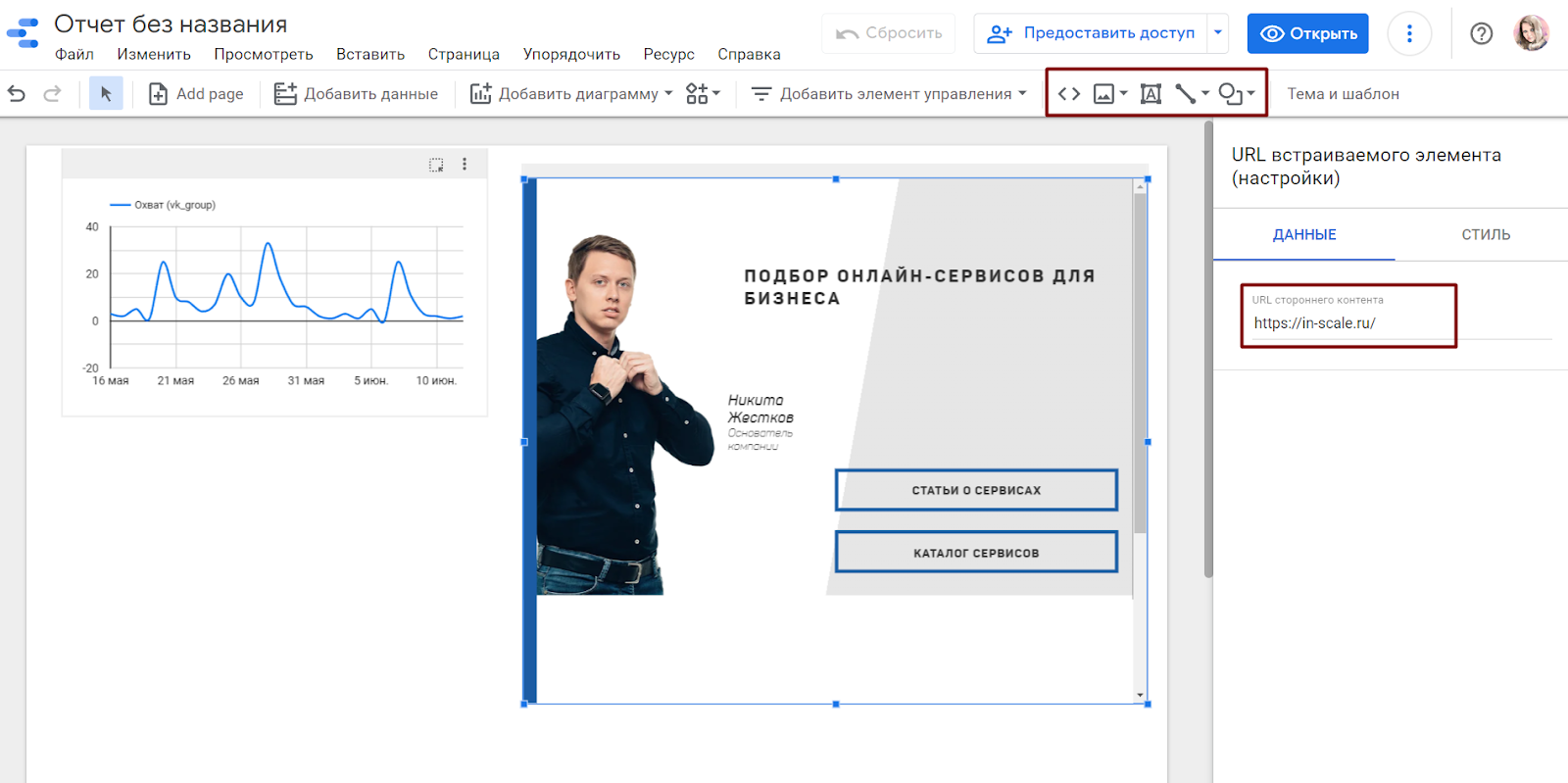 Покажем на примере дашборда для SMM во ВКонтакте, для которого выбрали Google Data Studio.