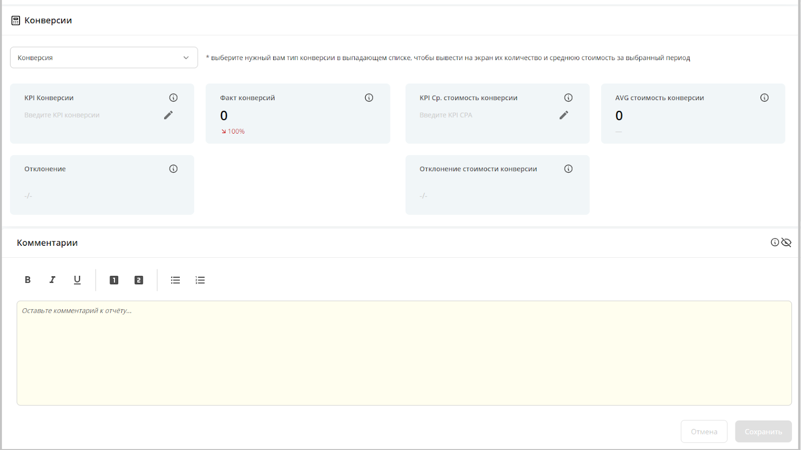 Данные по KPI и комментарии специалиста — одни из самых важных блоков в дашборде для отчетности перед клиентом