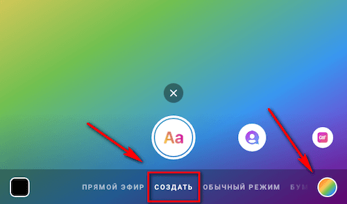 По умолчанию в редакторе сторис можно снимать видео или делать статичные истории с фоном.