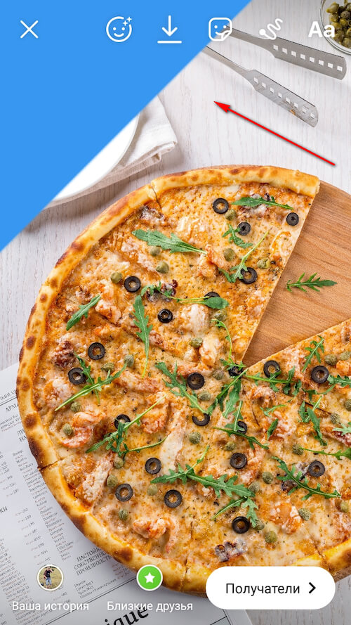 Теперь берем инструмент ластик (для этого снова заходим в панель рисования) и нажимаем значок ластика. Стираем часть фотографии. Получается такой стикер-эффект. Можно использовать, чтобы оформить свайп в сторис.