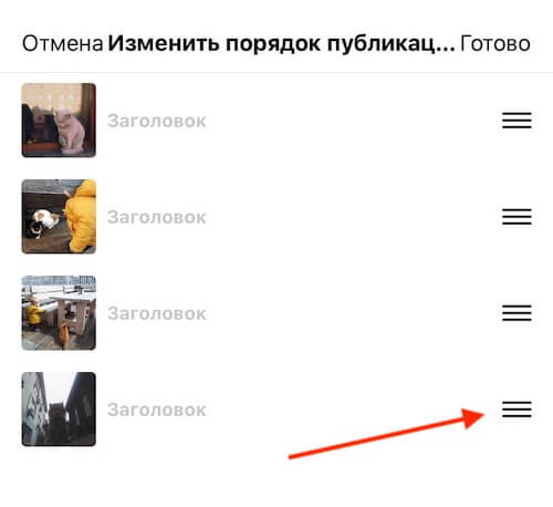Когда будете менять порядок постов, просто зажмите нужную публикацию и перетащите на новое место в списке.