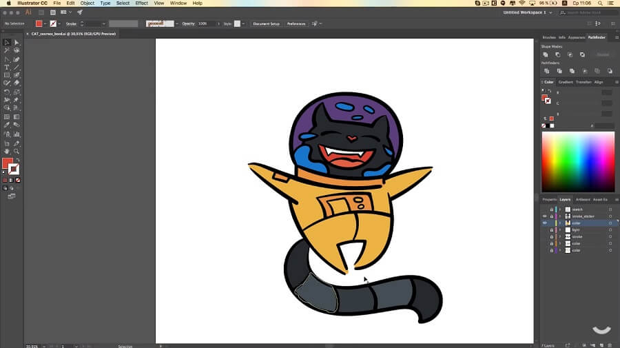 Шаг 3. Закрашиваем рисунок. Создаем отдельный слой «Color» или «Цвет» и закрашиваем с помощью инструмента «Blob Brush Tool». Слой с цветом стоит поместить под слой с контуром, чтобы он не выходил за рамки обводки.