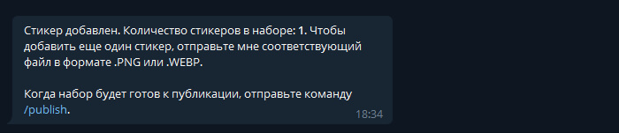 Шаг 6. Для публикации стикера нужно отправить команду /publish.