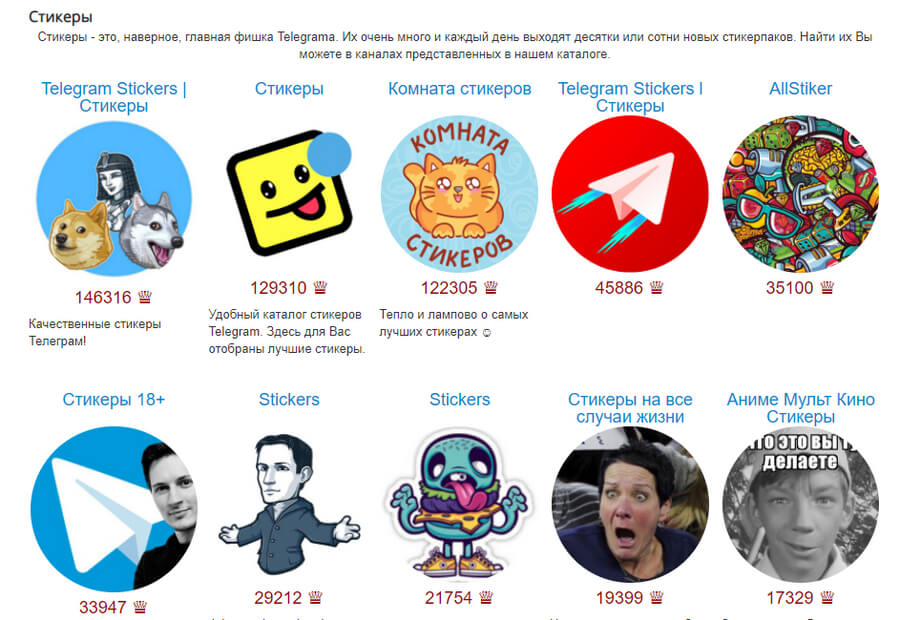 — Предлагать стикерпаки в Телеграм каталоги. Это каналы, где выкладывают разные стикеры. Их можно найти в Телеграм по ключевикам «Stickers» или «Стикеры». Но проще найти каталоги на сайтах telegros.ru и tlgrm.ru. Суть в том, чтобы предлагать в эти каналы свои стикеры на правах рекламы, а где-то их могут разместить и бесплатно.