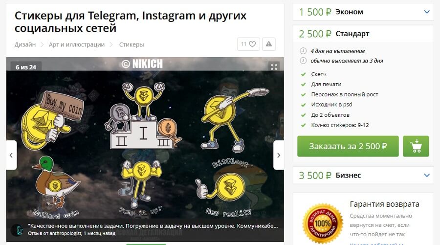 Если навыков нет — нужно искать художников. Предложения по созданию стикеров есть на Kwork.