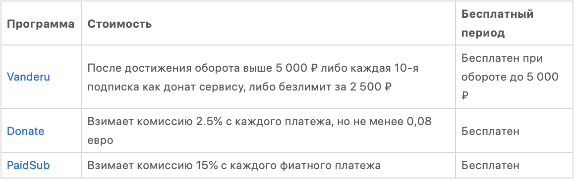 У следующих трех вариантов немного другой принцип оплаты — либо комиссия с каждой купленной подписки, либо донат сервису. Присмотритесь, вдруг Вам подойдет именно такой формат: